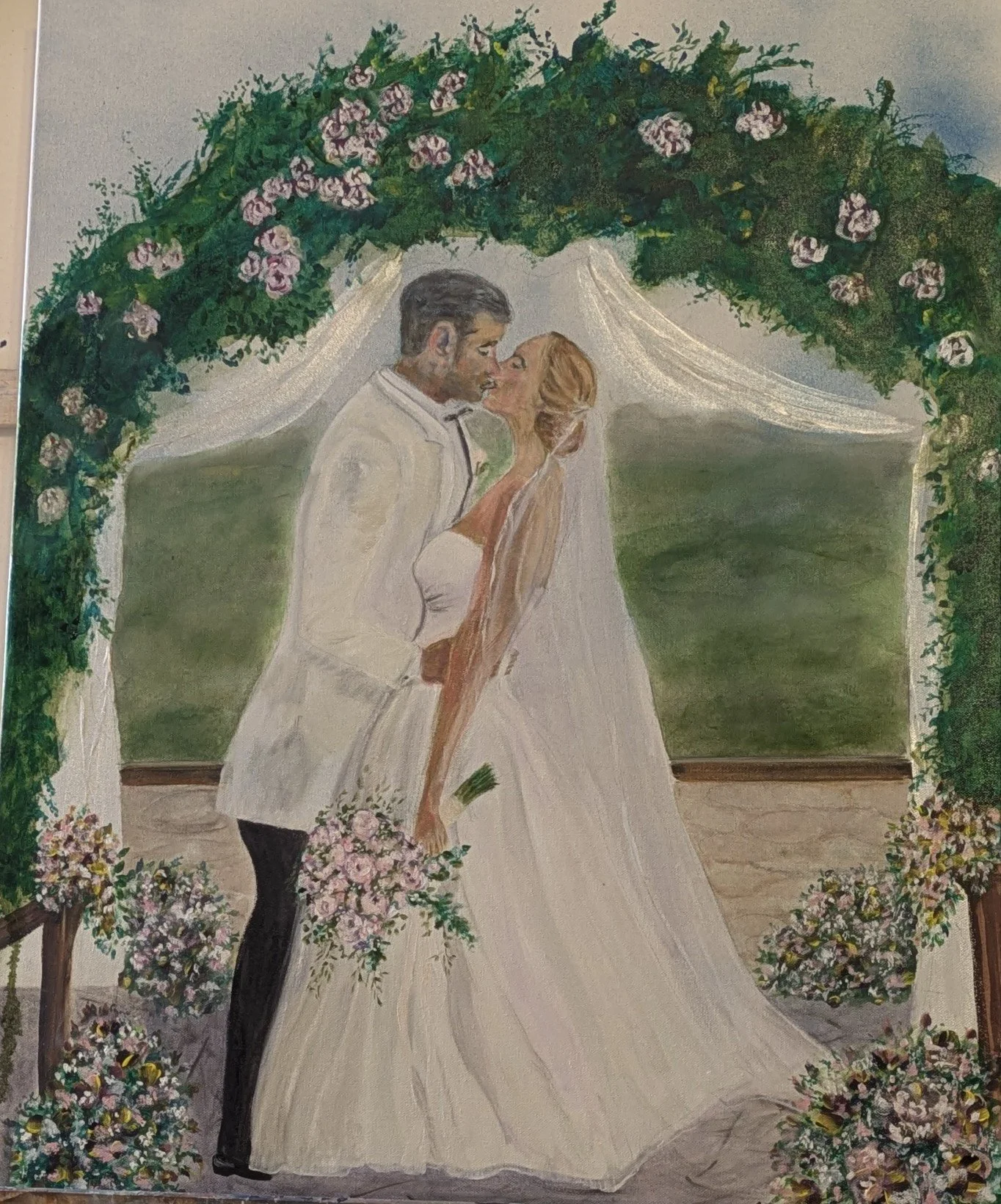 Live Wedding or Event Painting will elevate your wedding or other special day with a truly unique, immersive experience. As a mixed media artist I will create a piece that speaks to you for a lifetime, not just about your ceremony, but incorporating your lives. At an interview we, together, will discover and plot the backdrop for an archival piece and add to it the beauty of the wedding day.
